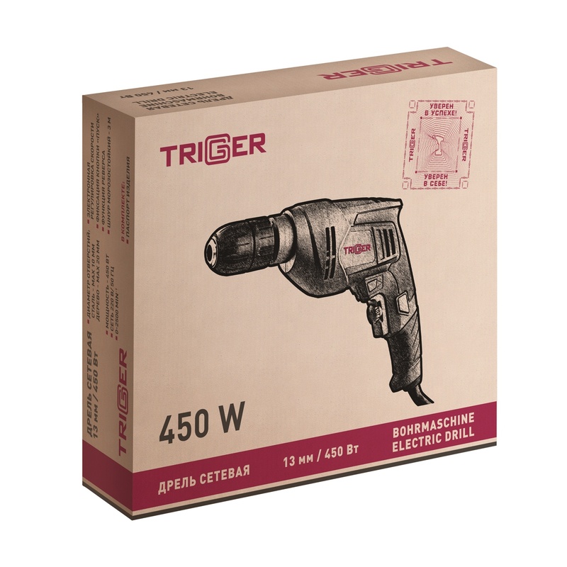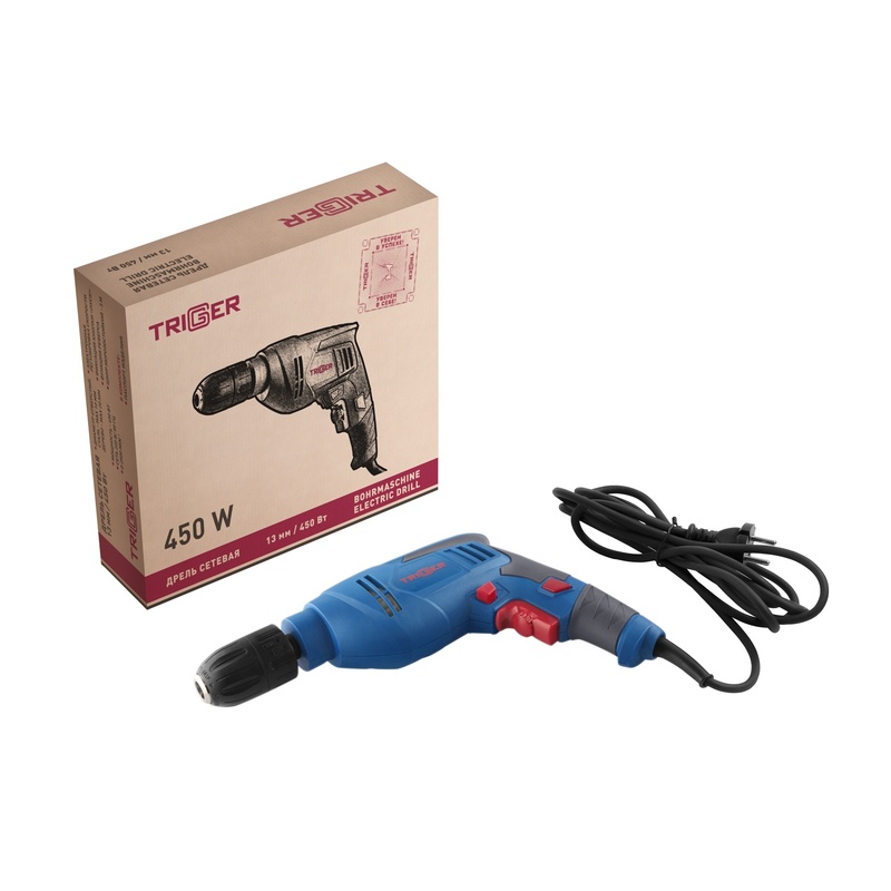 Дрель безударная сетевая Trigger 20016, 13 мм, БЗП, 0,45 кВт, реверс, 0-2500 об/мин