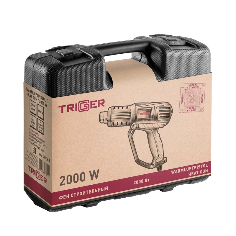 Фен строительный сетевой Trigger 20061, 2 кВт, 50-600°, 4 насадки, L кабеля=3 м, кейс в Уфе