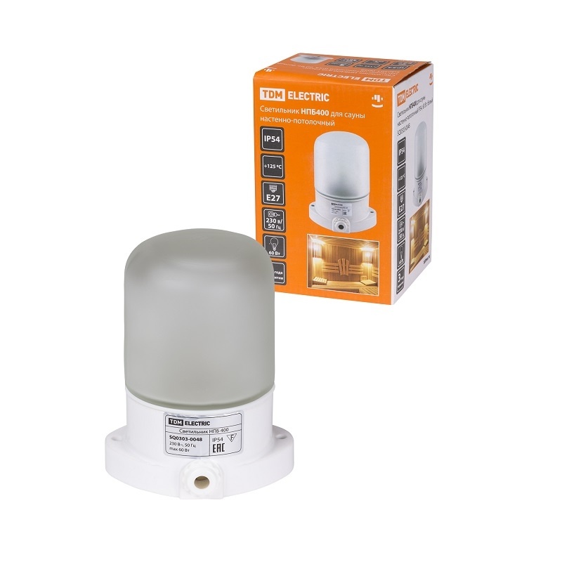 Светильник НПБ400 под E27, 60Вт, 230В, IP54, д/сауны, керамика+стекло
