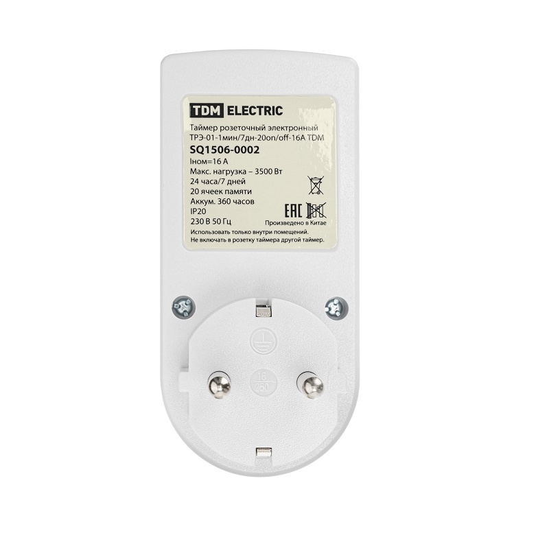 Таймер в розетку электронный программируемый 1 мин/7 дн-20on/off 16А